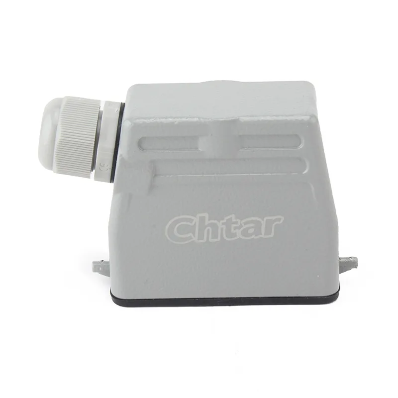 This CHTAR 16 Pin TS mini heavy duty connectors is matching H16A-AG-LB as male and female parts to work together. It is 16A current heavy duty electrical connectors. It is mini size to compare with HE range. From the design perspective,it is made of aluminum.