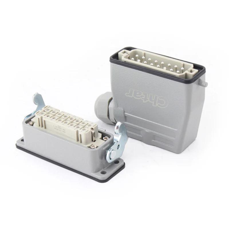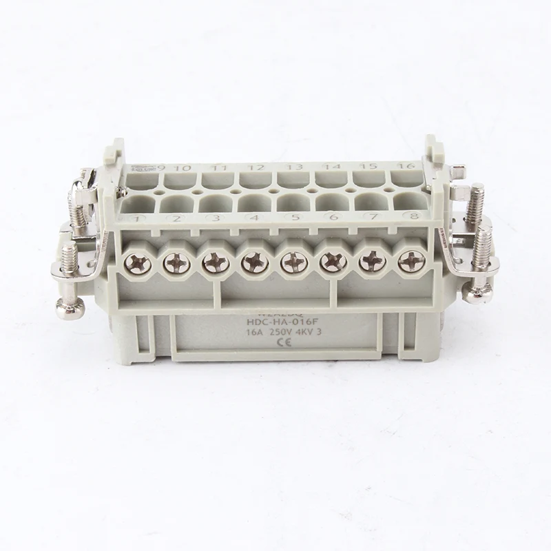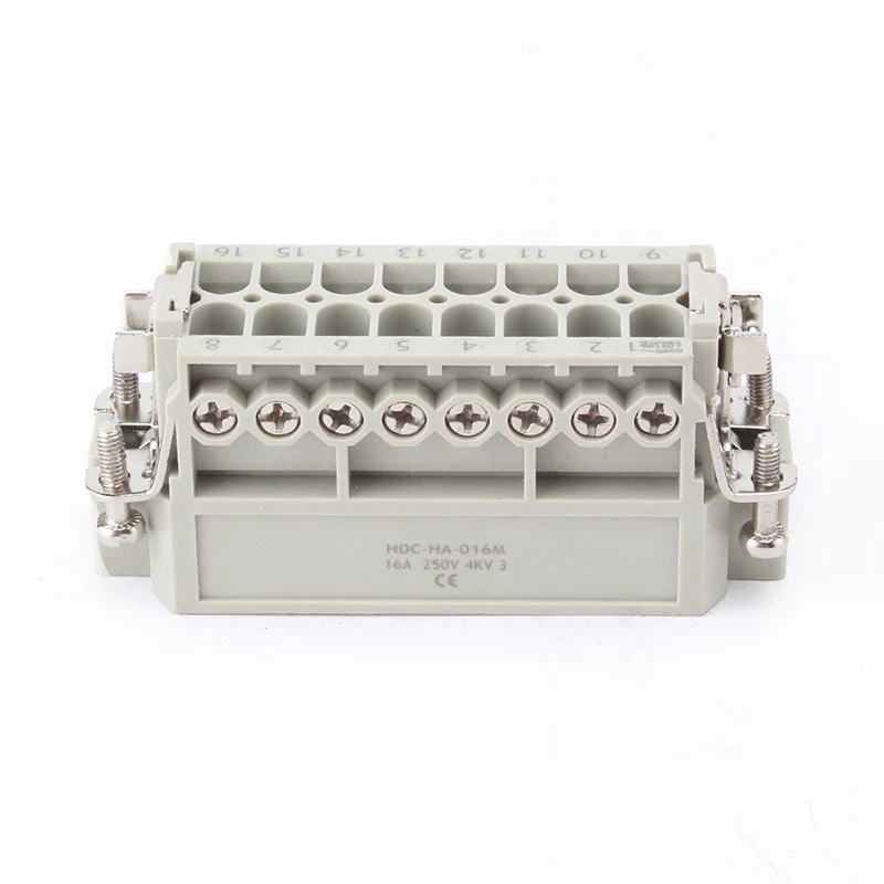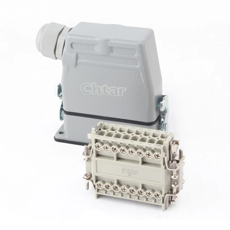Compared to HE-016, CHTAR's durable 16A 10 Pin Insert Heavy Duty Connector is a 16 pin mini version. It can work in a smaller space. They are usually assembled together with the HA-016 aluminum casing. They are made of high-strength PC and have brass silver plated pins inside. It has 16 pins connected by 16 wires. Our factory is located in Yueqing City, Zhejiang Province, China. We have been producing heavy-duty connectors for over 10 years and have over 15 years of experience in export trade. We look forward to becoming your trusted long-term partner in China.