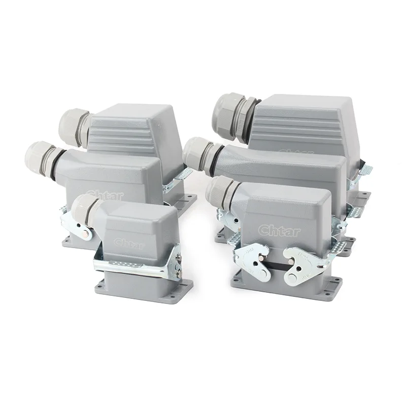 This CHTAR 16A H24B-TG Housing heavy duty wire connector is characterized by many different area,like robust chemical-resistant thermoplastic construction, modular and flexible design for various contact configurations, high IP degree, ours can reach IP65, IP67, IP68, with sealing for harsh environments, secure vibration-proof screw-lock coupling, integrated strain relief and touch-safe protection .