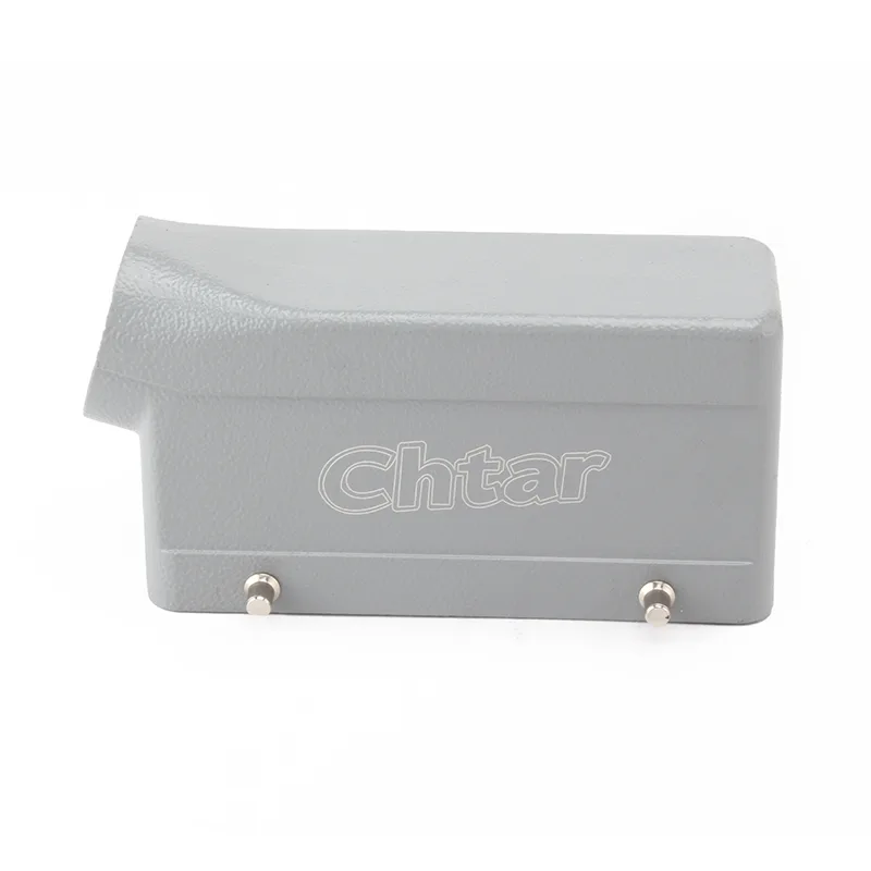 China manufacturer CHTAR 16A H24B-TS Housing heavy duty connectors is working with HE HD HEE,HDD and so on different series of heavy duty connectors. It is made of Aluminum raw material coated by powder and RAL7037 grey color.