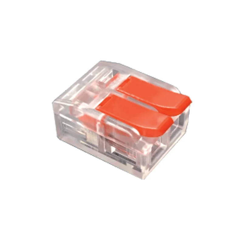 Our 2P 4mm2 splicing wire quick connectors are made of UL94 V0 grade PC housing material . Conductive is made of T2 copper and spring is made of S301.
