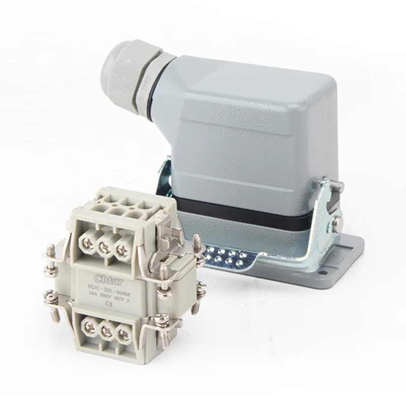 This CHTAR 6 Pin AG Heavy Duty Connectors are widely using with HE HD HEE, HDD. It is base and female housing part of heavy duty connectos. It is made of aluminum and designed as single buckle. User-friendly type of heavy duty terminal block.