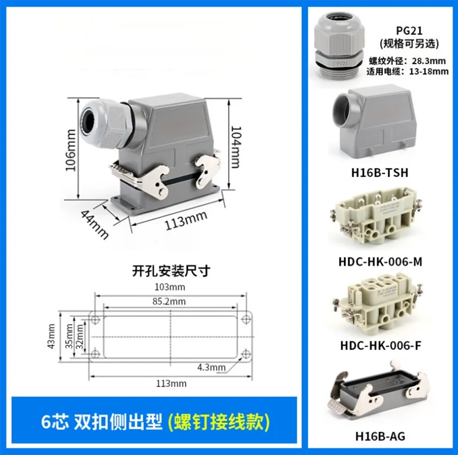 Please trust CHTAR's capabilities. We are a leading supplier in China, and our high-quality 80A 4+2 Pin Insert Heavy Duty Connectors are compatible with the 80A H16B-TSH housing heavy-duty connector housing. It is made of high-strength PC material and 4 pins, assembled in an H16B aluminum casing.