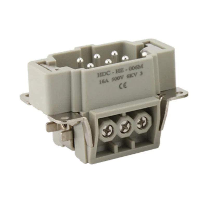 It is assembled in 16A H6B Housing heavy duty connector. M/F 6 Pin Insert Heavy Duty Connector is made of strength PC material and brass silver-plated .Our pins are plated with silver, very good quality and much better electrical conductivity. It is assembled with seal rubber to keep it waterproof feature.