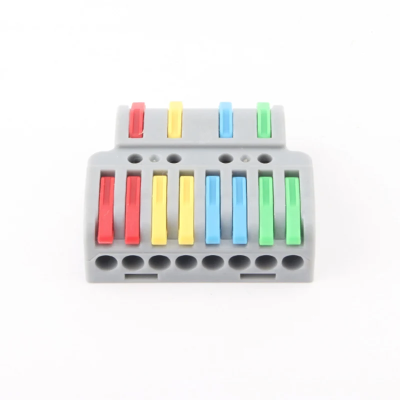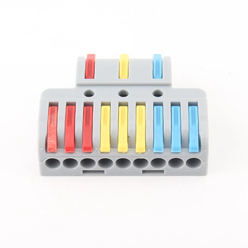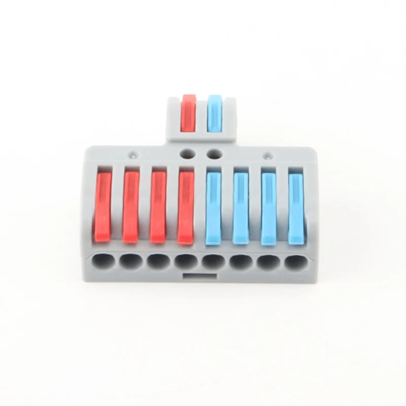 Multi-in Multi Out Splicing Wire Quick Connectors classic product appearance, different color handle partitions realize the differentiation of the wiring direction of the product. Let users know more clearly how to connect the branch lines. The test hole reserved on the top of the product facilitates customers to test the power-on performance after wiring.