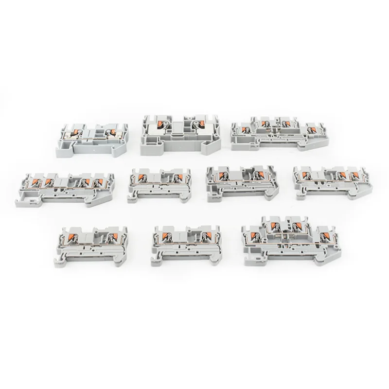 The PT 10 Feed Through Din Rail Terminal Block incorporates push-in connection technology that simplifies wiring—no tools are needed. Users can insert a prepared wire directly, and the integrated spring-clamp mechanism locks it securely. Compared to screw-type connections, this innovation boosts efficiency dramatically, cutting wiring time by up to 80% and reducing insertion force by about half. The result is faster integration and lower labor effort.