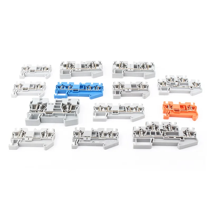 The ST2.5 QUATTRO Spring Din Rail Terminal Blocks are electrical connection devices typically mounted on rails within control cabinets or equipment for quick wiring and maintenance.Terminal blocks are typically equipped with insulating materials and physical isolation structures to prevent short circuits, electric shocks, or loose wiring, thereby enhancing system safety.