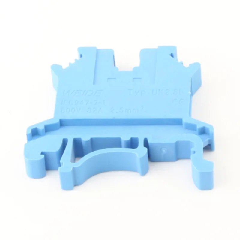 This CHTAR UK 2.5B Din Rail Terminal Block is connecting up to 2.5mm2 wires.It can be splicing together with different quantity ,color and sizes for connection propose. UK 2.5B Din Rail Terminal Block is assembled on G 35mm and U 32mm din rail normally. If sealing is required, it can be used in conjunction with the end cap for closure.